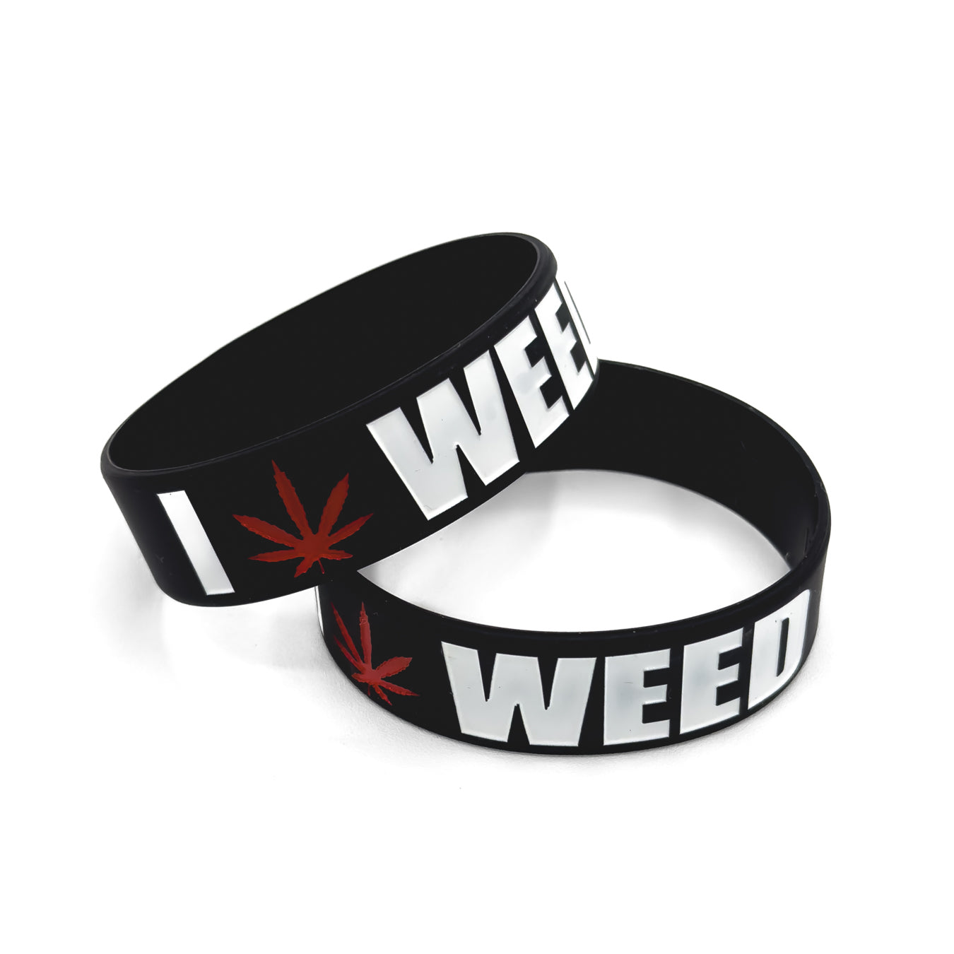 - (1x) 100% silicone black wristband with white and red imprinted design