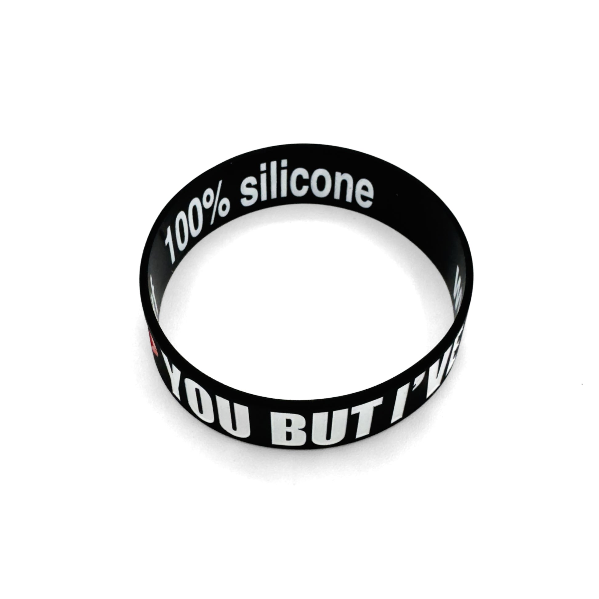 - (1x) black wristband with red and white imprinted design