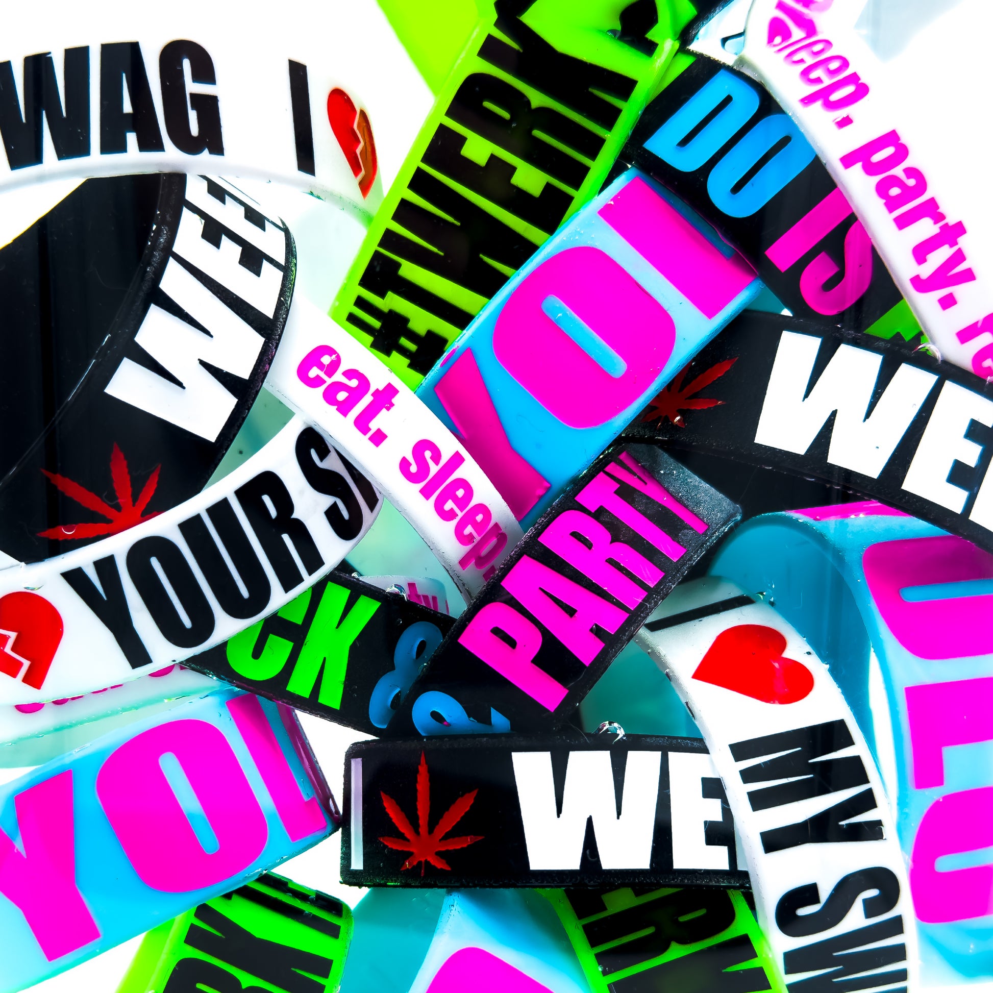 - (1x) 100% silicone wristband with black imprinted text